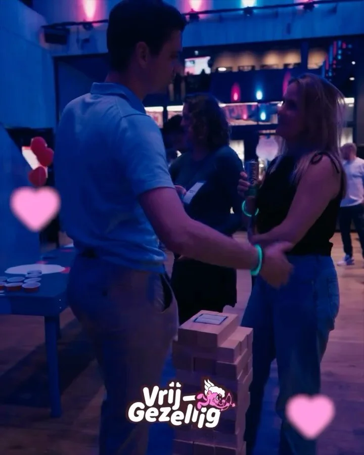 Bij Vrij Gezellig laten we de datingapps even voor wat ze zijn. We geloven dat de mooiste connecties ontstaan op de dansvloer, bij de bar of tijdens een spontaan gesprek. Onze missie is simpel: een veilige en ontspannen plek creƫren waar echte ontmoetingen centraal staan. Met de lekkerste 'All you can dance' muziek, speelse activiteiten en een flinke dosis ongedwongenheid vieren we het echte leven. Of je nu single bent of niet, iedereen is welkom om te dansen en te verbinden.